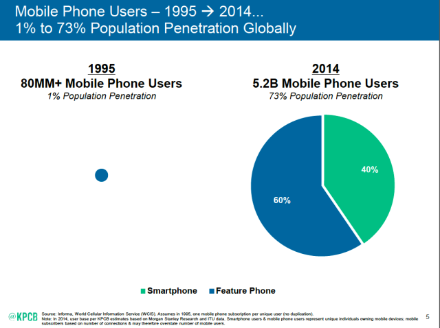 Meanwhile, there are 5.2 billion mobile phone users, up from 80 million in 1995.