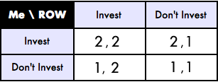 We might describe this as a game with two Nash Equilibria (“ROW” means “rest of world”):
